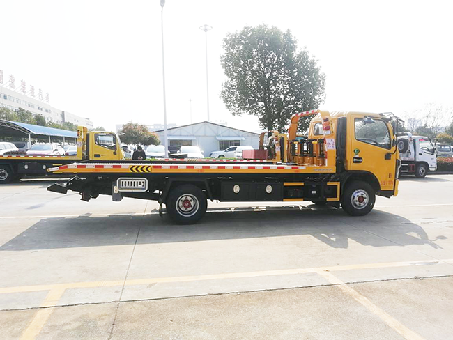 5、清障車是在專用底盤基礎上裝配托舉、拖拽、起重等裝置,對車輛進行清障拖牽、背載運輸等作業;