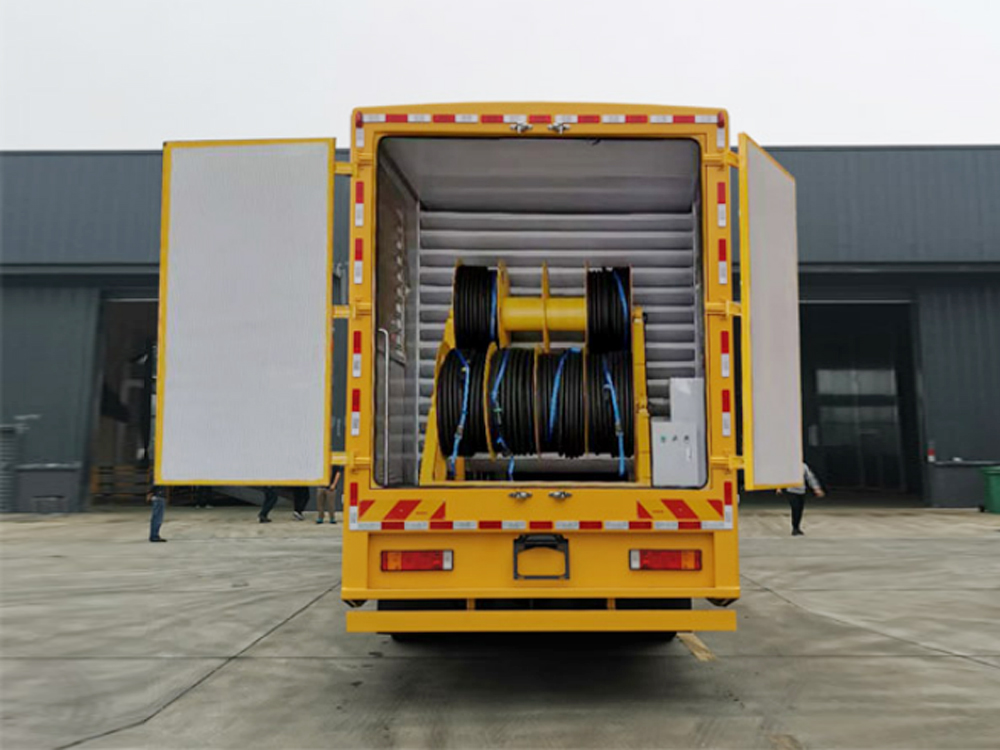 8 | 液壓卷盤 | 電動絞盤,布置在車廂尾部。電纜絞盤可根據不同規格電纜收放的要求選用不同的變速比,達到**的工作效果,操作十分簡便,收放自如。300平方雙拼電纜線,供電距離30米。 |