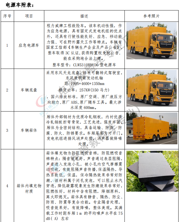 應急救援車/應急搶險車/程力威牌工程救險車。該車機動性強,真正實現(xiàn)了移動水泵的概念,設備可滿足緊急排水搶險的需要,并具備移動電源功能,車輛有**工信部《車輛生產企業(yè)及產品公告》,整車取得3C認證,獲得購置稅免稅公告,能在采購地合法上牌。